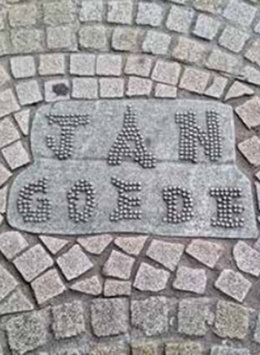 De gedenksteen van Jan Goede op de Dam, voor Dam 2